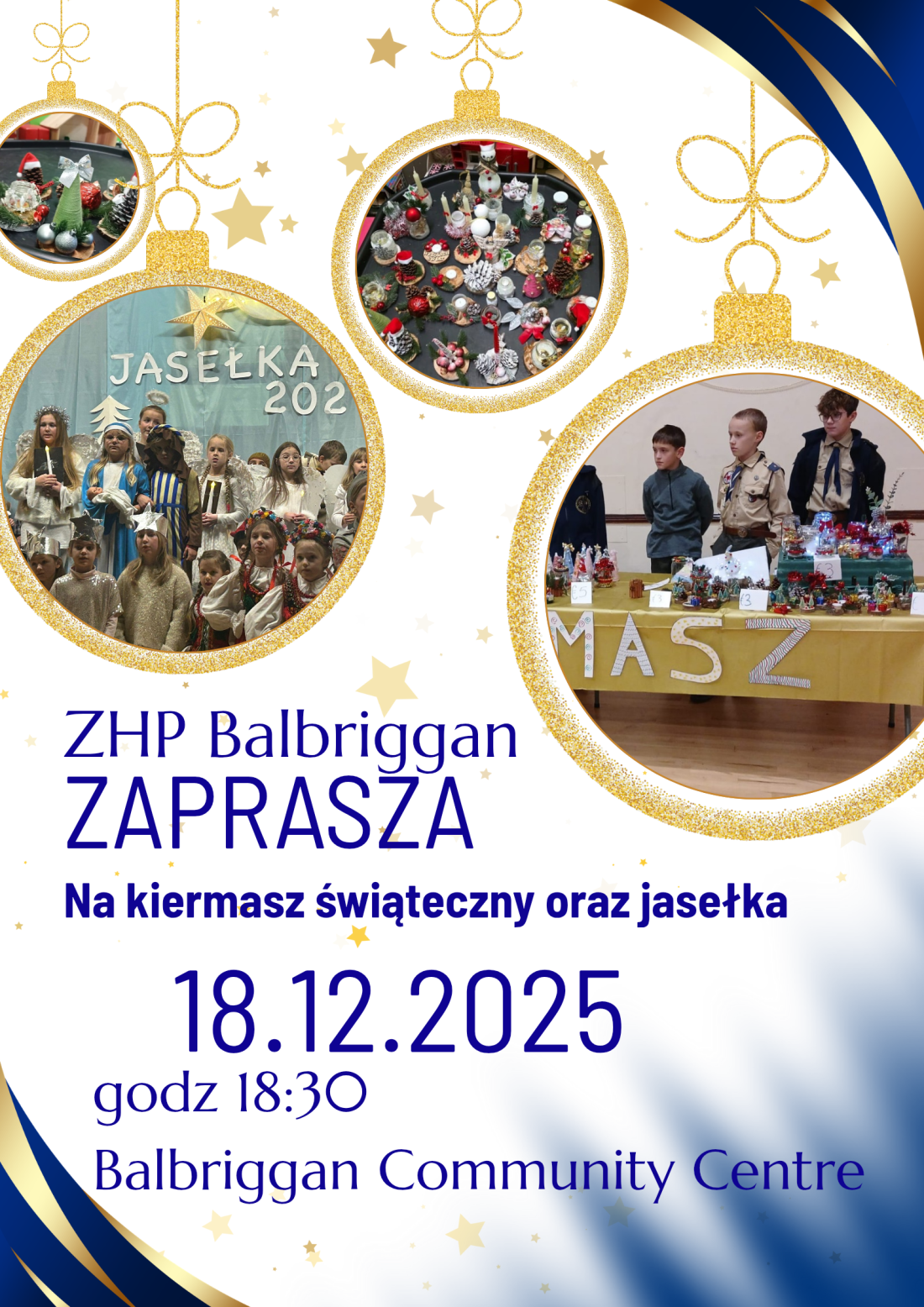 ZHP Balbriggan zaprasza na kiermasz świąteczny i jasełka we czwartek 18 grudnia w Balbriggan Community Centre (23 Dublin Street Balbriggan K32 NA00)