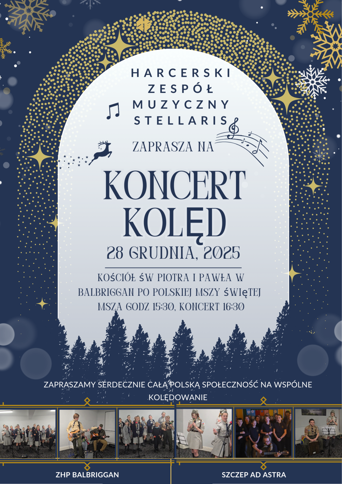 Harcerski zespół muzyczny "Stellaris" zaprasza na koncert kolęd 28 grudnia w niedzielę po Mszy Świętej w Balbriggan.
